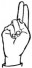 На ћирилици написано КОСТАДИН КАЛОПЕР састоји се из 15 слова [?]. Исписано ћириличном једноручном азбуком за глувонеме: